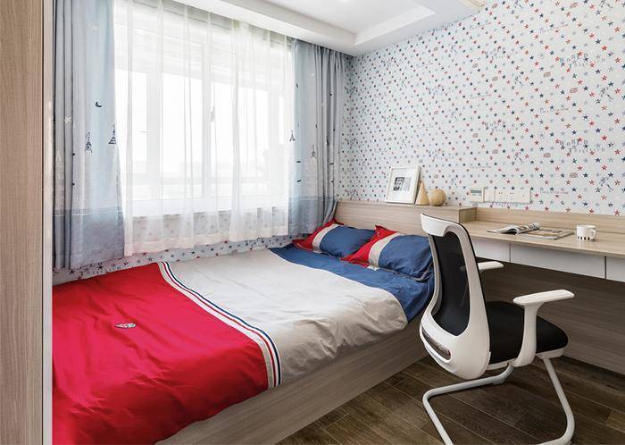 如果你家儿童房间空间很小,并且你又想增加一些储物空间,可以选择量尺定制床,定制的床可以加一些抽屉或者柜子组合,这样可以增加很多收纳空间。