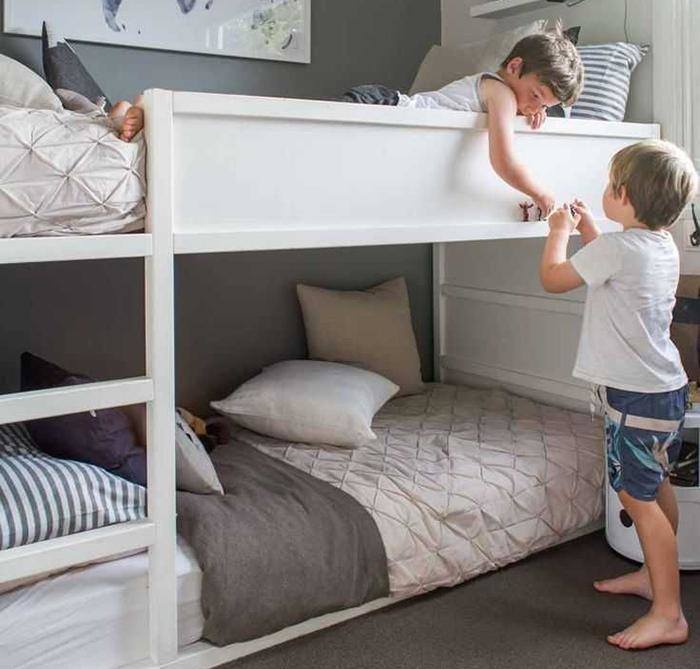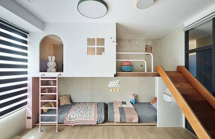 如果你家里有两个小孩要住同一间房的话,可以选一张高低双层床,这样两个小孩住在一起,也会增长感情。