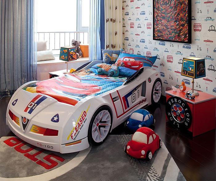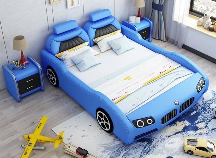 如果小孩不喜欢高低床,也可以选择一些可爱造型的床,比如男孩喜欢的汽车床。