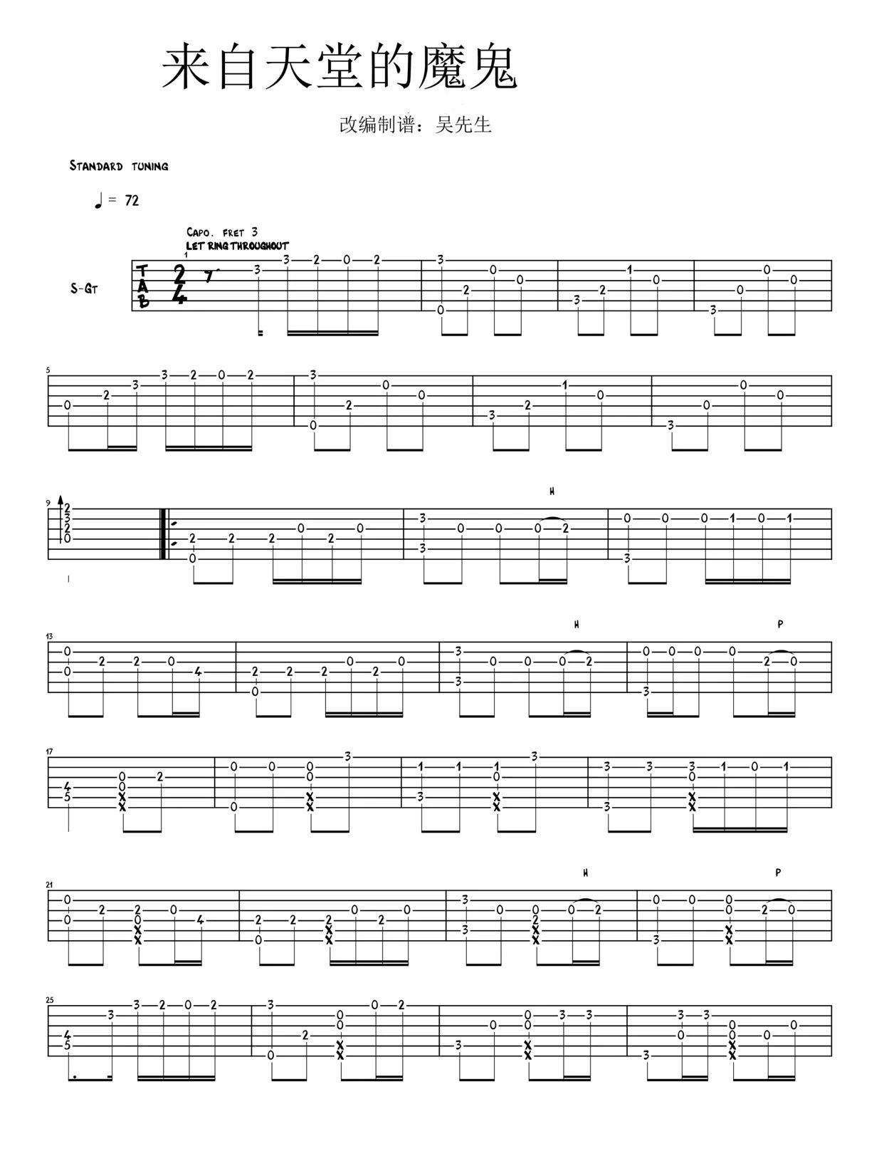 《来自天堂的魔鬼》指弹吉他谱