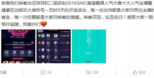 二姐微博现在已有33万粉丝,动态的评论数也稍高些,但在比赛初期,她的微博也就一两百的评论,只有靠每天直播宣传,粉丝积极配合,所以可以看出来她其实没有什么后台,完全靠自己打拼,这与来到映客不久就要赶超她的球姐(赵本山小女儿)是不太一样的。