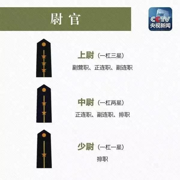 一杠带星是尉官:从一杠三星到一杠一星分别是上尉、中尉、少尉。