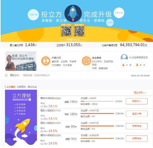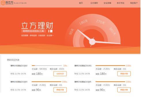 在直观视觉方面来说,首先,网站顶部导航栏菜单做了一系列的小幅度位置调整,延续保留了“首页”、“安全保障”、“新手专区”、“我的账户”等必有栏目,每当鼠标移上去就会自动触发交互效果,而新增的“立方理财”下拉菜单融入了“定期理财”、“散投优投”;其次,网站公示发布的项目进行了详细分类和分栏展示,最新的活动排在首行格外显眼,能有效地让更多的新手用户快速关注到此条信息,呈现出绝佳的体验方式。随后是“立方理财”和“精选项目”专区,当谈及“立方理财”的内容,网站交互设计师骄傲地介绍,这是此次打造的重点,改版后个人中心账户清单更加明显,首页产品项目分类更加清楚;最后,企业动态由原来的右侧竖条位置转换到网页正文部分,形成独立的一分栏,以后相关的平台公告、媒体报道均会在此栏目展示。