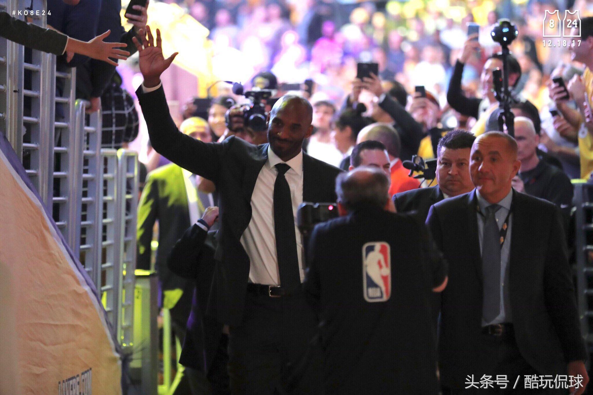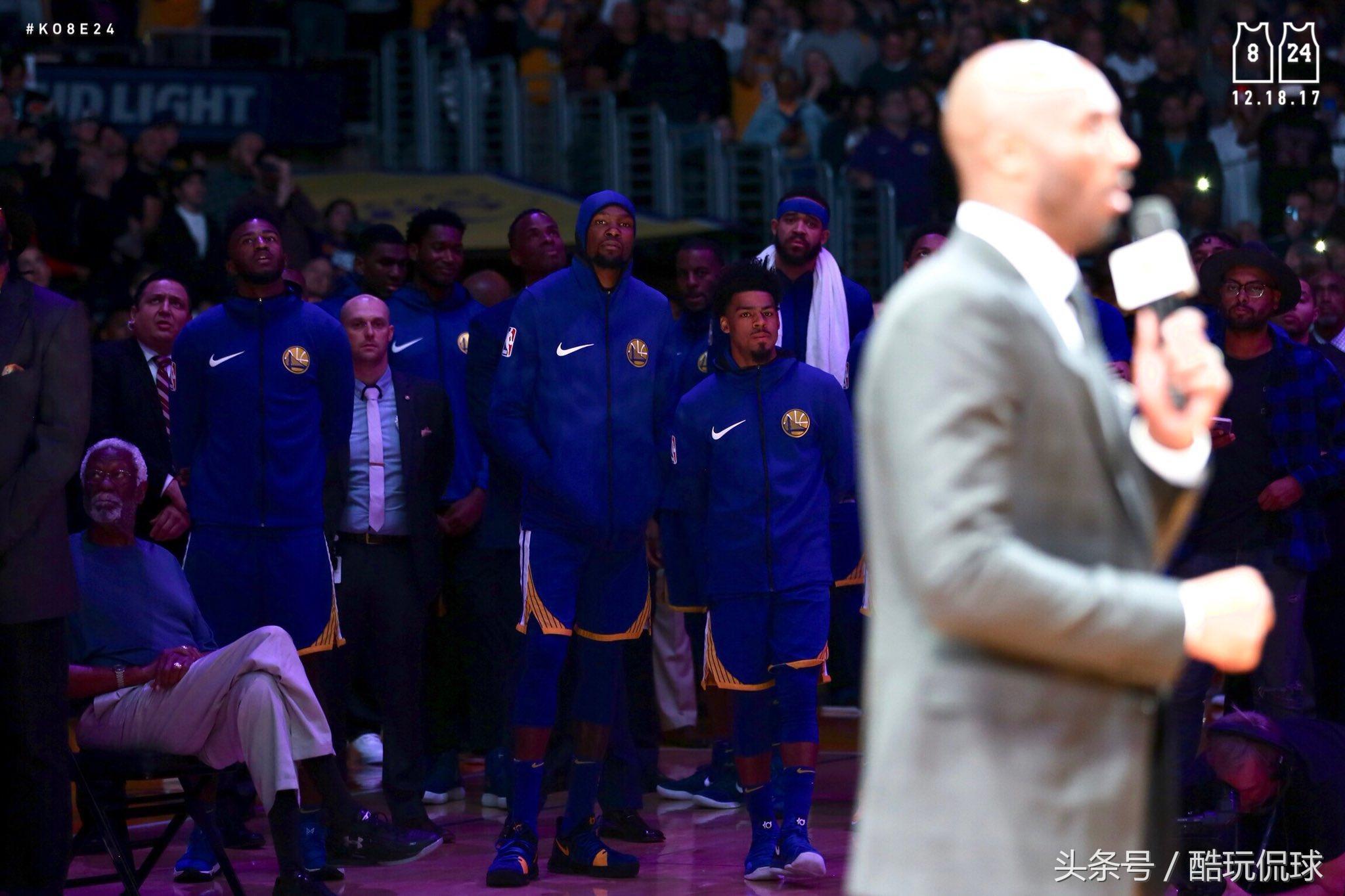 刚刚湖人和勇士队比赛中场休息时间进行了科比8号、24号球衣退役仪式。下面几张图片带你看完