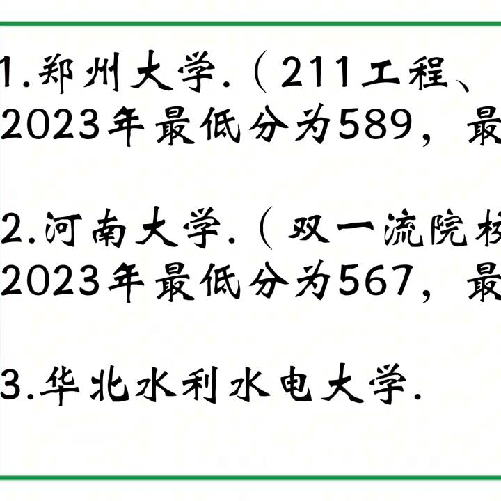 ·1.郑州大学(211工程、双一流高校),录取分数线为589分,录取位次为589。