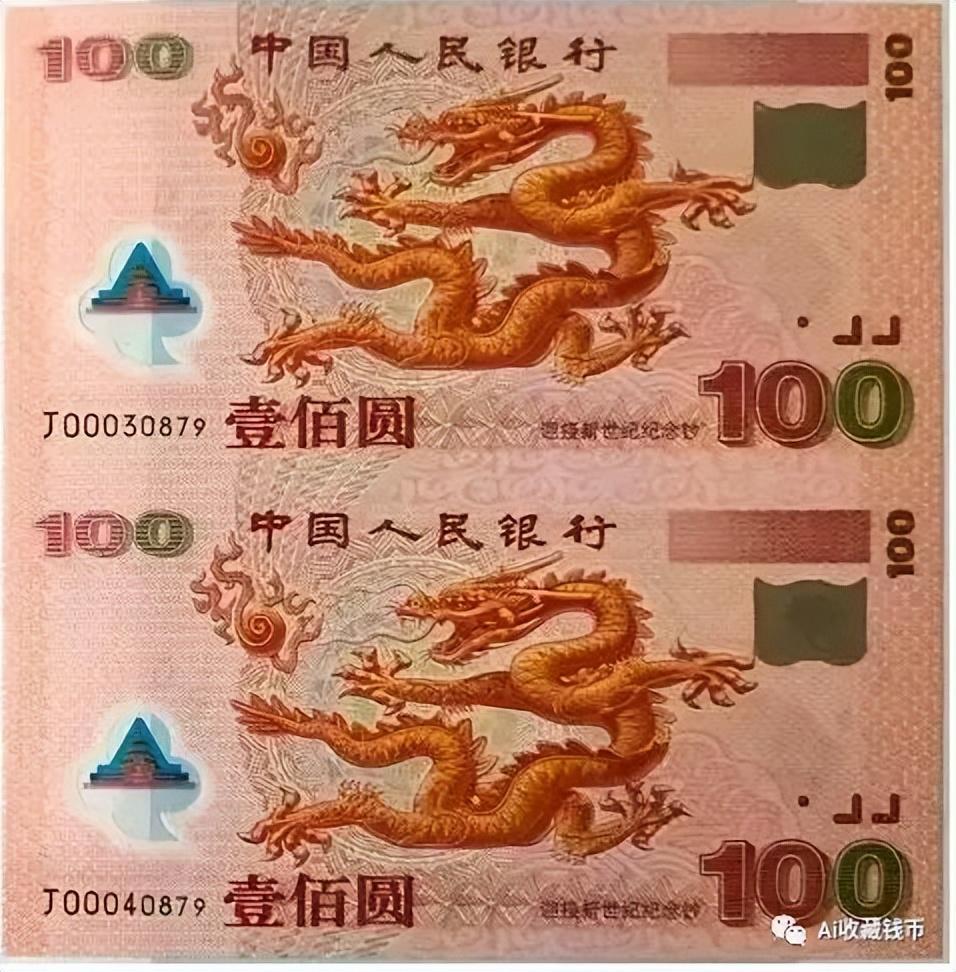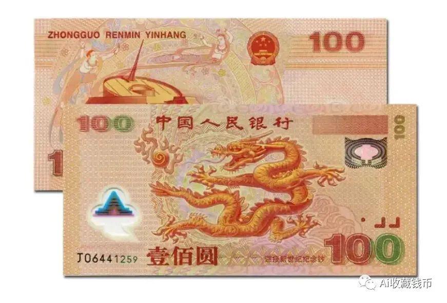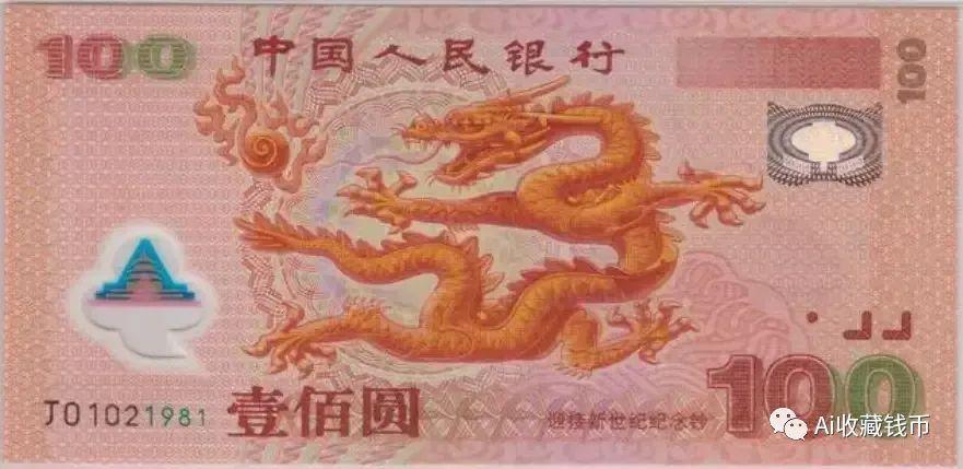 发行的时间有具有着特殊的意义。再加上这一款纪念龙钞它的正面位置是以九龙壁中的升龙作为依据设计的,给人一种庄严无比、矫健雄姿的感觉,我国族人又以龙的传人自诩,所以对龙的喜爱,也是情有独钟,自然也会爱屋及乌。此外,迎接新世纪100元纪念钞本身也象征着展示了我国政治稳定、民族团结、社会进步的一个现实状况,具有重大的意义。
