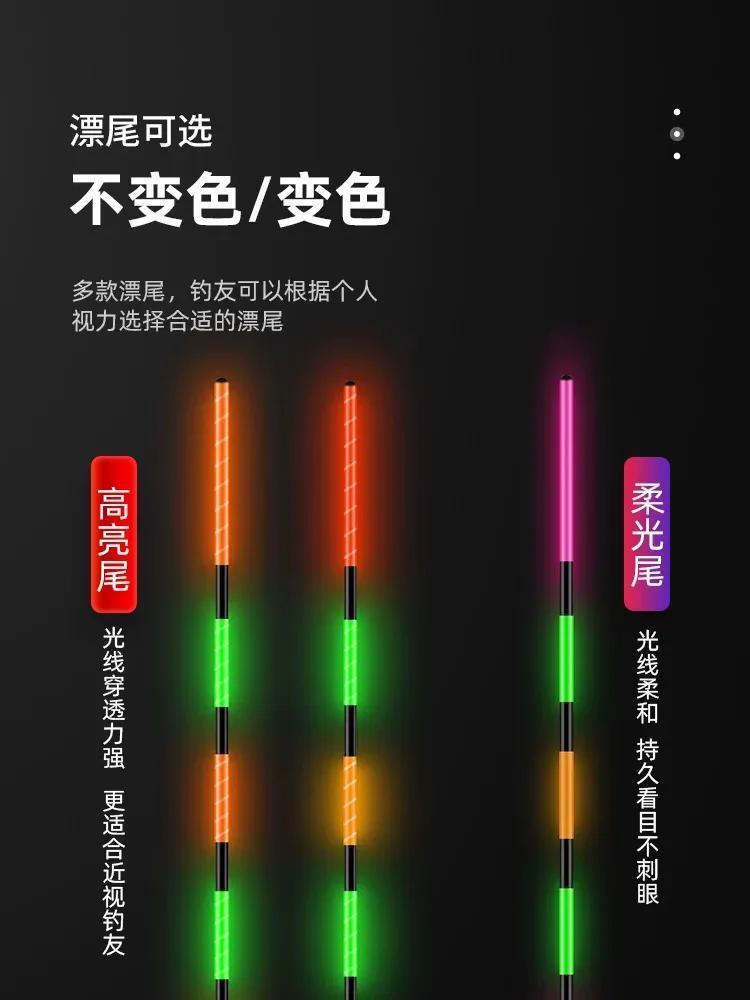 现在有种夜光漂打出的噱头就是咬钩变色,这种漂我个人是不太感冒的,保留意见。只是觉得功能越单一越简单损坏的概率就越低一些,相反,功能越多配件越多越复杂的东西它就越容易出现这样那样的问题。问了一些用过这种夜光漂的钓友反馈说太过灵敏,有时候鱼碰线或者从旁边游过水流变化都能引起变色,假信号太多。更有甚者水面浮的垃圾碰到了浮漂都能使它变色…所以该如何选择自己考虑吧~