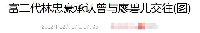 之后她的绯闻对象就不是娱乐圈男星了,2010年传出她和李泽楷的表弟林忠豪在一起,被拍到了林忠豪接送她的照片,但廖碧儿否认了。