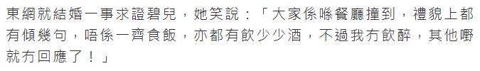 转头媒体又去采访廖碧儿,她说是在餐厅遇见的,礼貌性聊几句然后一起吃饭,但关于结婚这件事她选择不予回应。