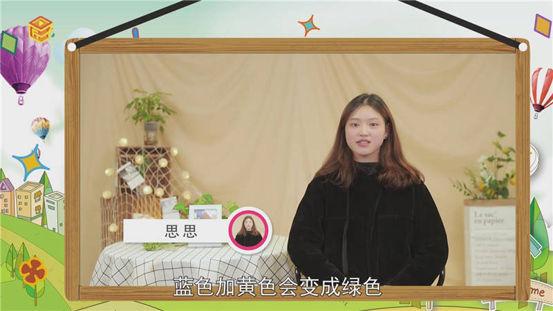 蓝色加黄色会变成绿色,混合比例不同,可以变成深浅不同的绿色。