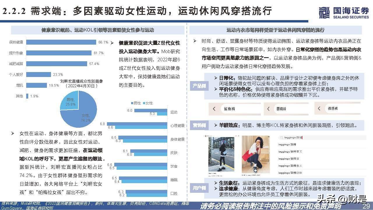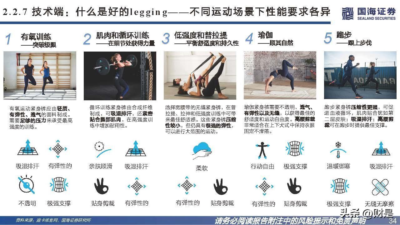 运动内衣强调运动场景,需要提供保护、更加舒适。运动内衣是内衣的细分类别,可穿于公共场所进行体育锻 炼、跳舞或其他运动活动,包括运动胸围、运动内裤、运动贴脚裤、运动紧身裤、运动袜子及其他。与普通内 衣有别的是,运动内衣设计宗旨是在运动活动中为消费者带来舒适及提供保护。