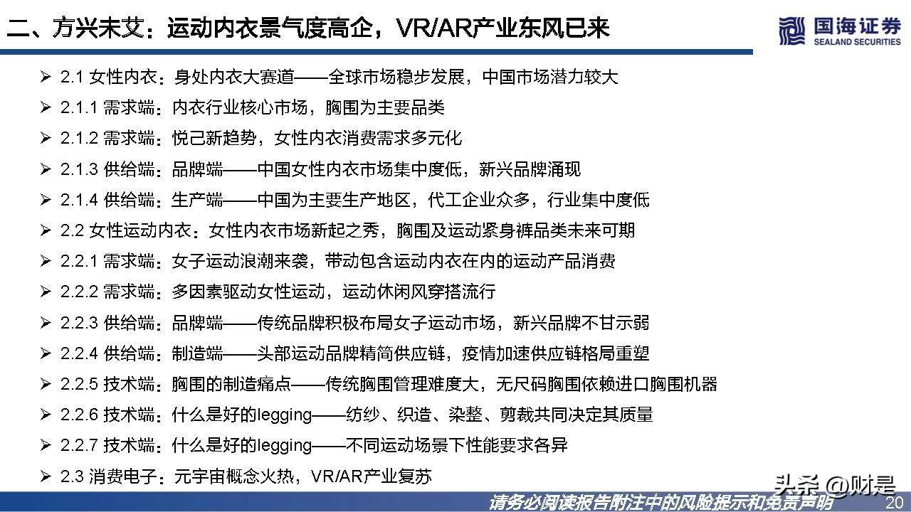 二、方兴未艾:运动内衣景气度高企,VR/AR产业东风已来