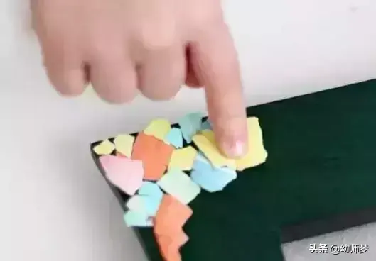 操作步骤:1. 用剪刀把彩色卡片剪成花瓣形,在用胶水黏结成一个小帽子。