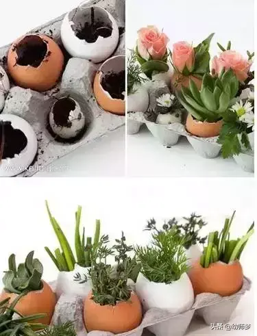 来试试下面这款不用花钱,只要动动手就能轻易完成的漂亮鸡蛋壳盆栽吧~~~