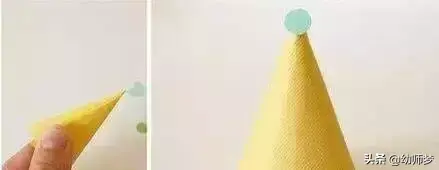 4、用彩纸做一顶圆圆的小帽子。