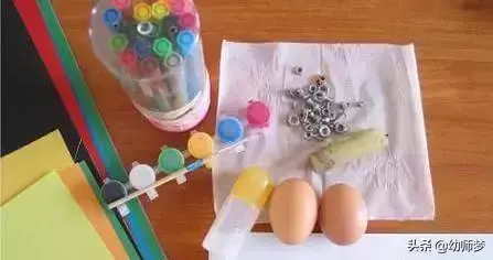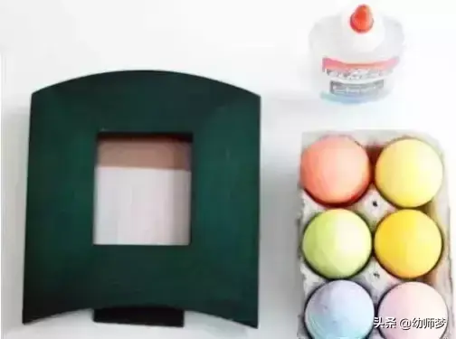 手工材料:鸡蛋壳、彩色卡片、彩笔、 贴纸、剪刀、胶水、零小装饰品。
