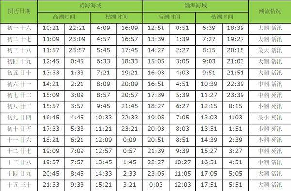 大连潮汐时间表