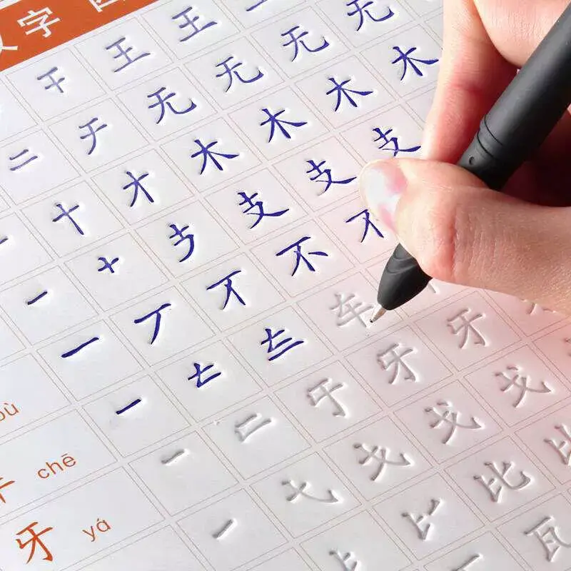 凹槽练字我小时候也用过的,当时的凹槽练字版没有现在的先进,就是一张硬纸板,上面的字有凹槽,可以在上面覆盖一张半透明的纸,比这下面的字写。