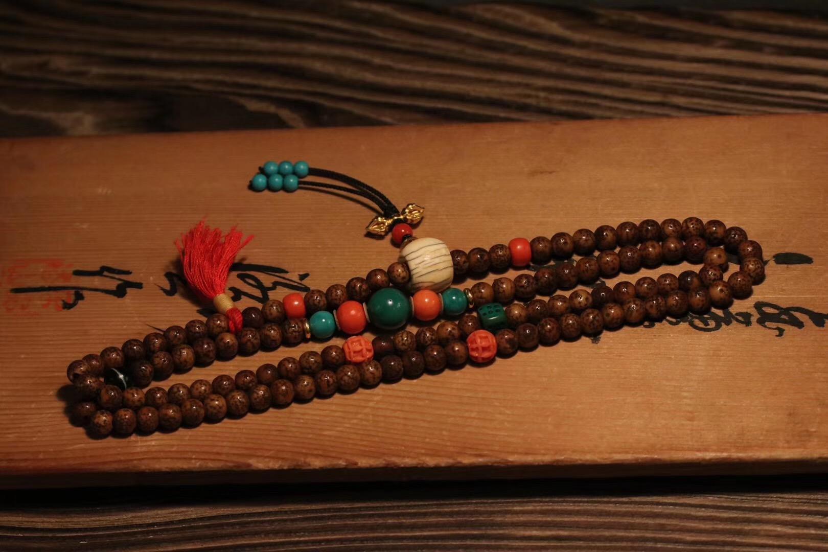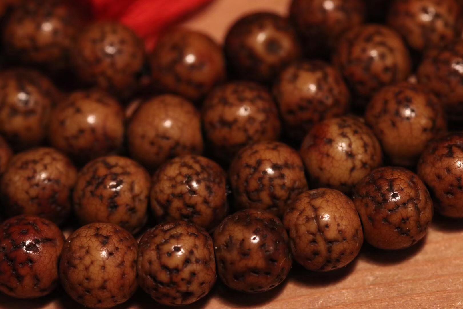 星月菩提子:因其珠子表面布有均匀的黑点,中间有一个凹的圆圈,状如繁星托月,成周天星斗,众星捧月之势,故名星月菩提子,被称为菩提“四大名珠”之一。