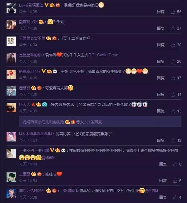 照片上传网络后,引来了大量网友围观。有眼尖的网友发现,在鹿晗与千千的合影中,鹿晗多年奇怪的招牌手势竟然消失不见了。随即不得不膜拜下千千女王“女王真厉害,让我们家鹿鹿都变手势了!不少网友更纷纷留言喊话千千「千千姐好,我是你弟媳妇!」、「千千姐,演唱会老鹿唱某时某刻你要是突然出现,我大概会泪奔,超级超级喜欢那个mv」,「鹿晗这段时间应该收获很多吧 不仅在街舞方面接触更多风格类型 更收获了很多朋友,给你们的友谊点赞!等等......看起来网友们对鹿晗这个姐姐千千女王算是相当地认同了。