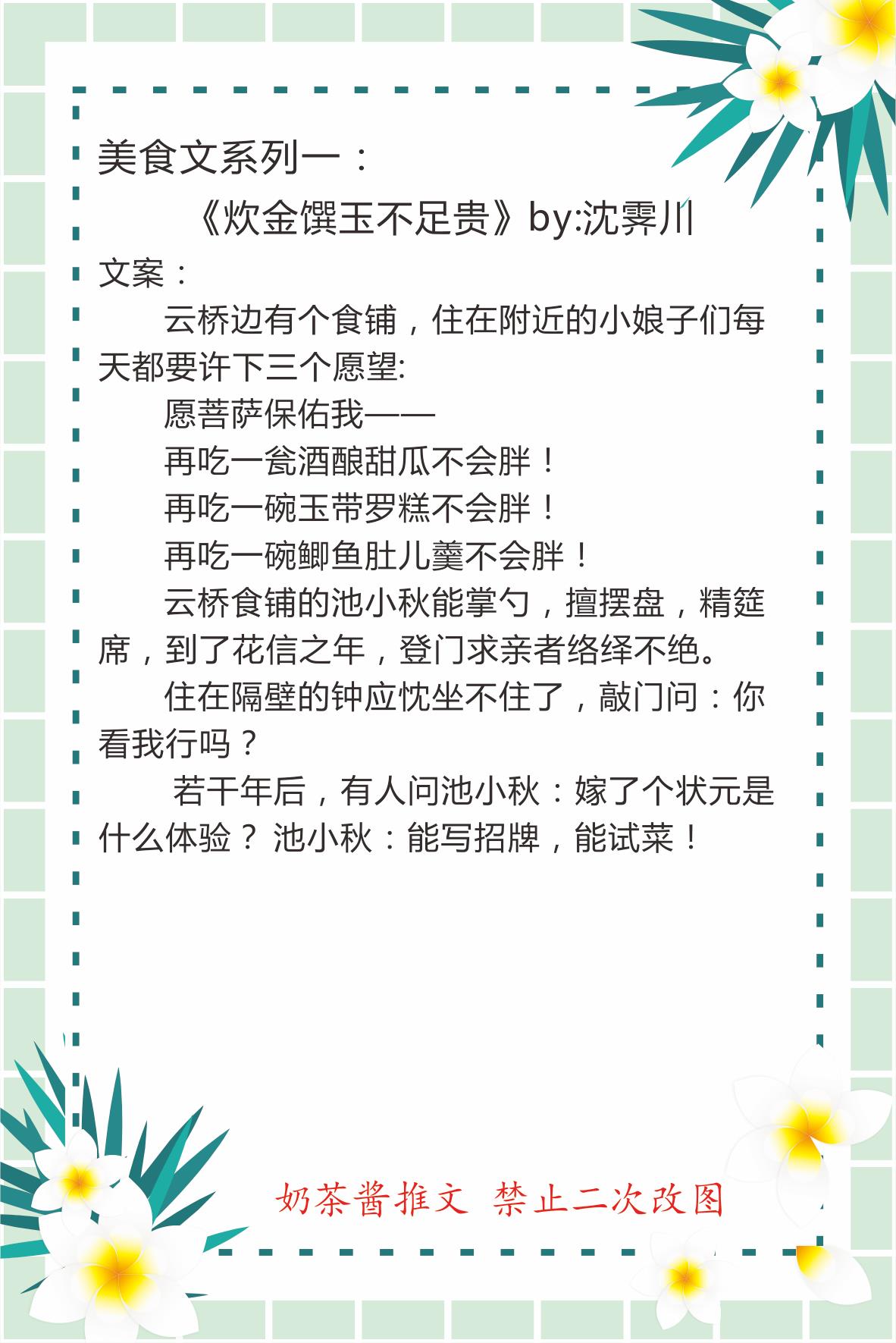 哪怕吃不到,我感觉看都是一种享受。印象比较深的有一本老文《苗小姐的减肥日记》我觉得大多数小仙女都有看过,因为这本竟然是讲减肥的,女主太有毅力了!这也不是一本单纯的减肥美食文,讲的是弄堂长大的苗小姐和英国回来的程先生的爱情故事,真的太甜了。话不多说,推文开始!