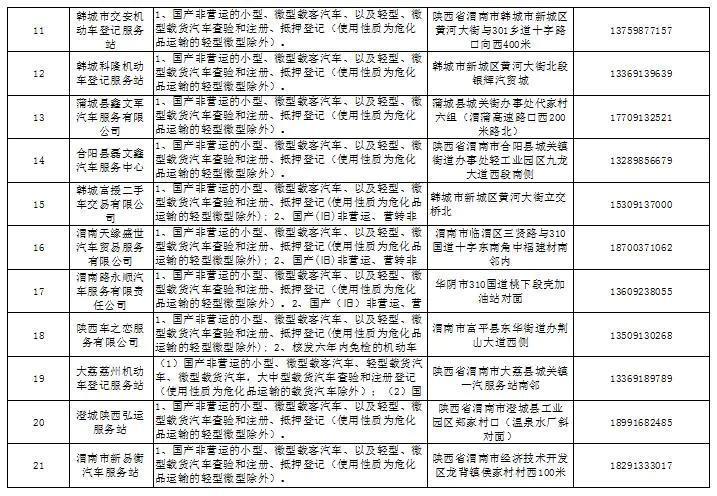 三、渭南市机动车登记服务站便民服务安排