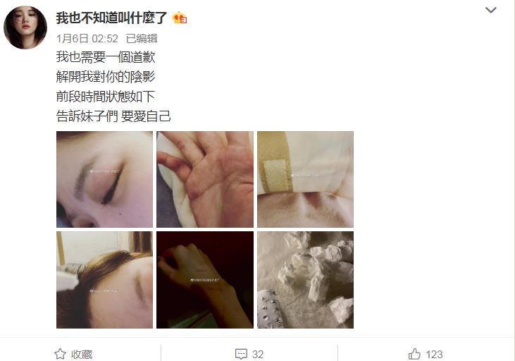 内容涉及到“屈楚萧让她打掉孩子”、“她曾为屈楚萧割腕”,且再度出现轻生倾向。