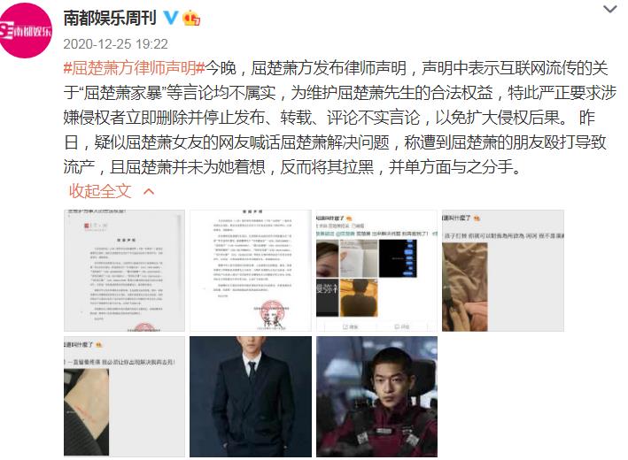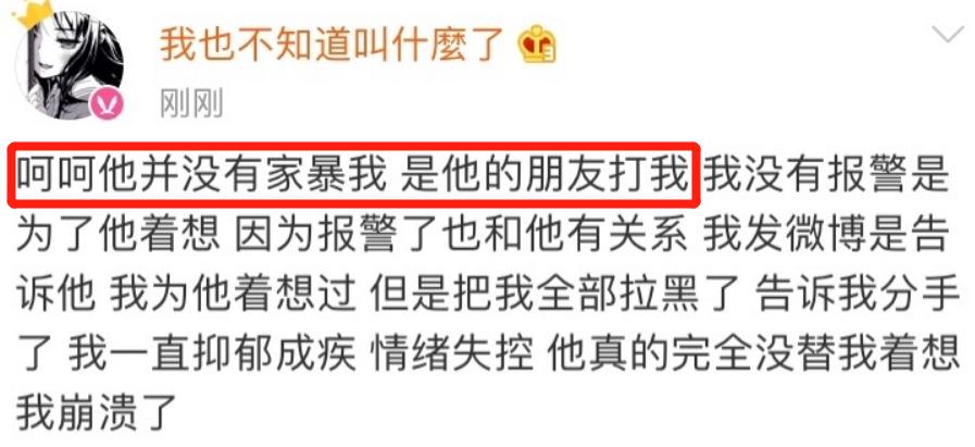 正当网友议论纷纷时,女生又发文表示,家暴自己的不是屈楚萧,而是屈楚萧的朋友对自己实施了殴打。