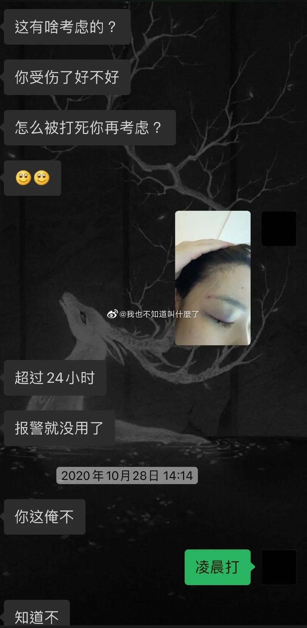 她发出的其中一张聊天记录,是10月28号发给朋友的伤情照片,朋友建议她赶快去做伤情鉴定、报警,间接证实她的受伤时间。