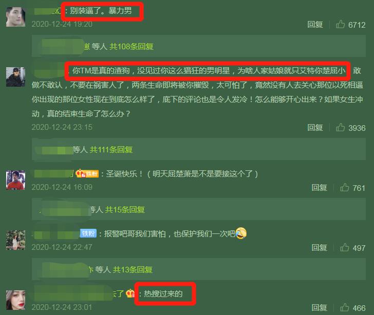 博主“我也不知道叫什么了”第一次爆出和他有关的绯闻,是2020年12月24号,她在屈楚萧超话晒出自己受伤的照片,和一张怀孕诊断书。