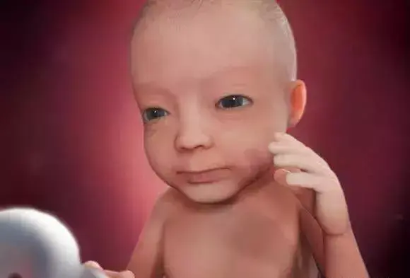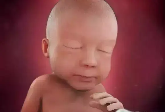 宝宝的皱纹皮肤开始被婴儿脂肪填充,使TA看起来更像一个新生儿。头发开始出现,有颜色和质地。宝宝正吸入和呼出羊水,这有助于发展TA的肺。这些呼吸运动是为出生时第一次呼吸空气做准备。