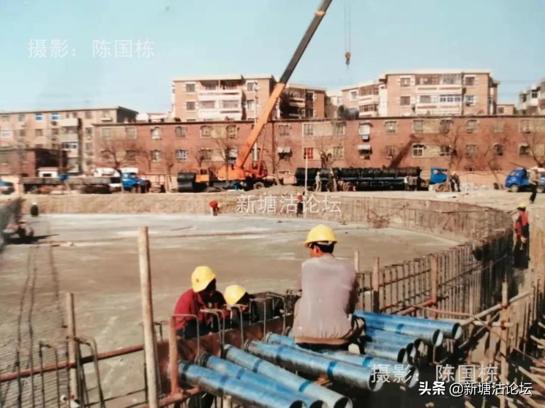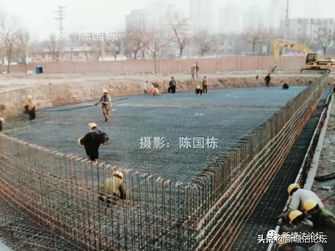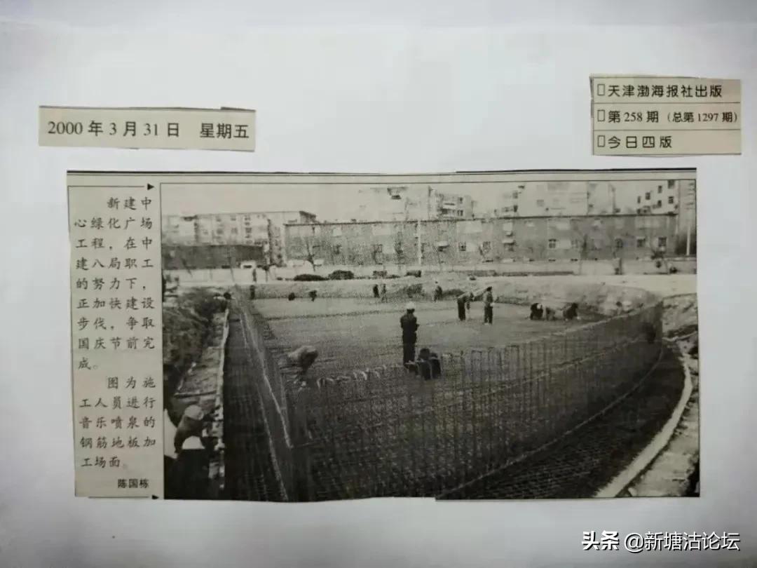 《天津渤海報》20003月31日,发了一幅大图片新闻,报导了施工人员紧张进行音乐喷泉钢筋地板加工场面