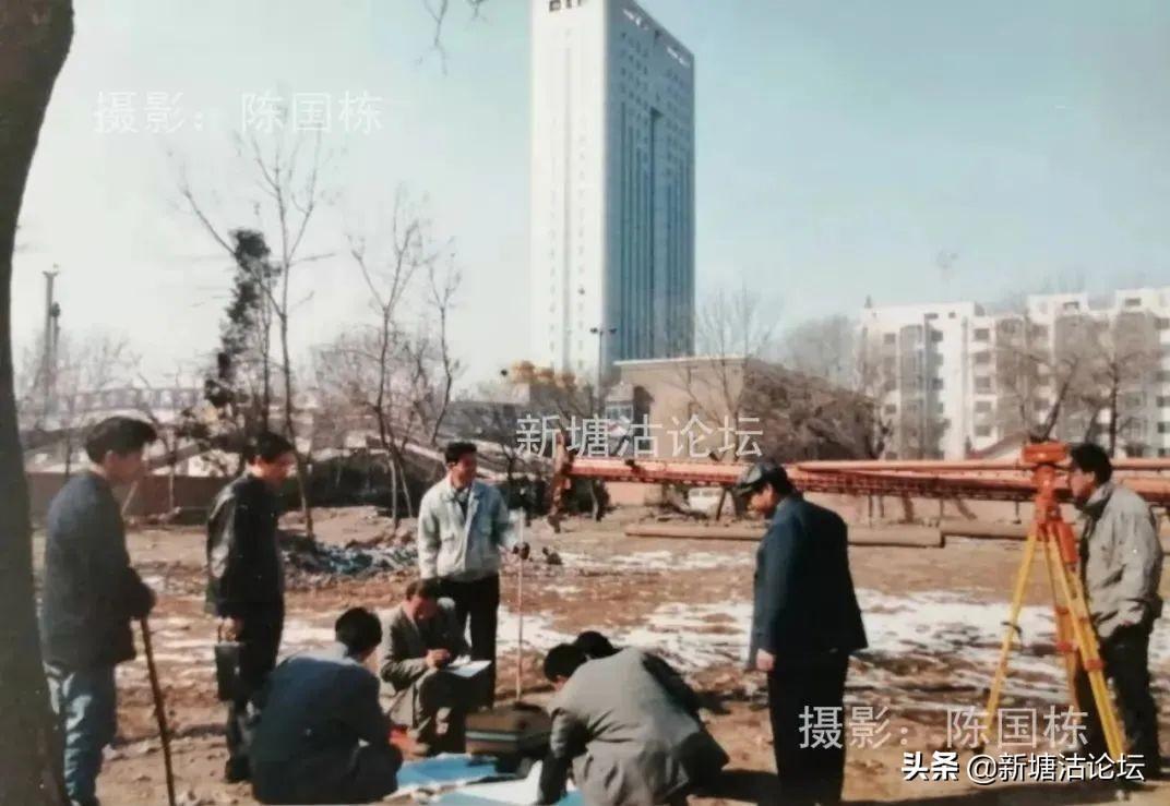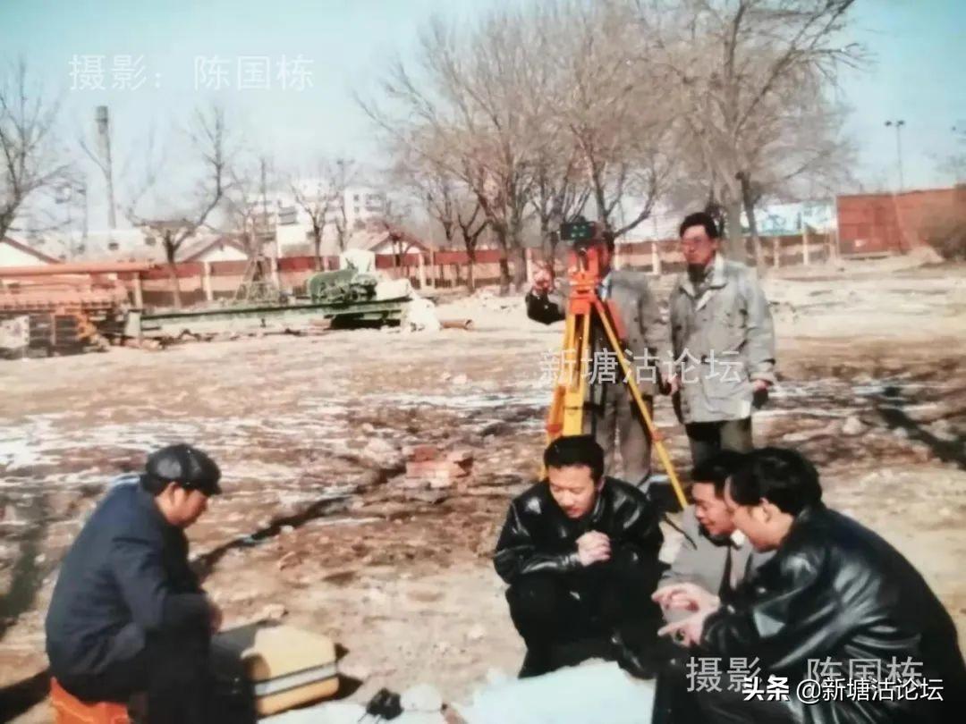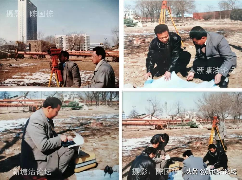 2000 年2月28日 刚开工的中心绿化广场工地积雪没融化,天气寒冷,中建八局施工队伍及技术人员就进入现场,抓紧勘测现场,测量放线,认真研究施工方案,收集数据,现场办公,紧张工作······。我多次赶到工地抓拍了几个典型镜头,并在《天津渤海报》2000年3月3日一版进行了图片新闻报道。反映了中建八局天津公司施工人员和技术干部冒寒风,在雪地上研究施工,勘测地形情景。为加快现代化港口滨城标志区建设,落实当年改善塘沽城乡十项工作,加快建设,而努力认真工作。