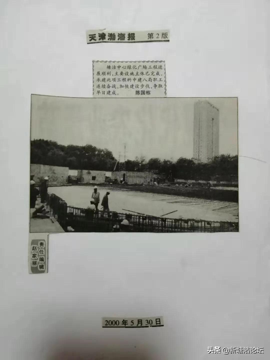 《天津渤海報》2000年5月30日二版发了图片新闻,反咉了广场工程进展顺利,主要设施主体己完成