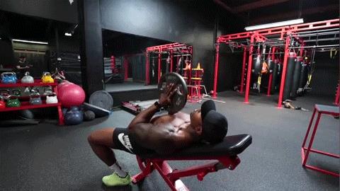 15.杠铃片卧推(主要刺激胸肌中缝)