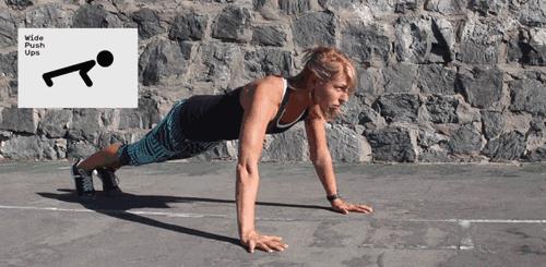 最常见的胸肌训练动作,身体必须保持从肩膀到脚踝成一条直线,双臂应该放在胸部位置,两手相距略宽于肩膀,缓慢下降身体,最终胸部距离地面应该是2到3厘米距离左右,然后,要马上用力撑起,回到起始位置。