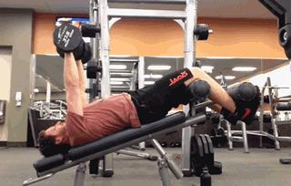 5.上斜哑铃卧推(主要针对胸肌上部训练)