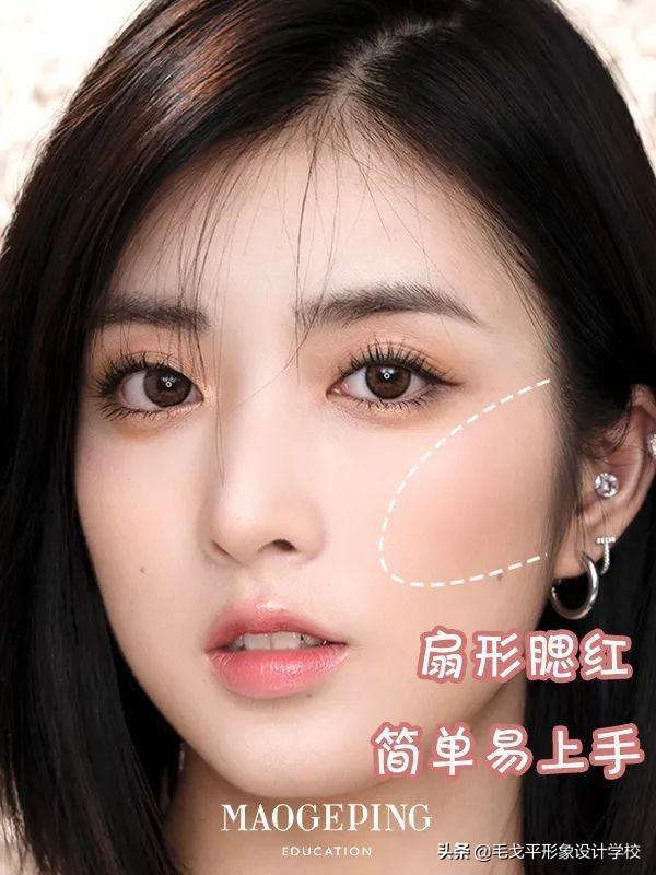 眼距过近的姐妹,从苹果肌开始斜向打腮红,简单易上手,可以有效缓解五官过于集中的问题,瘦脸效果也很好。