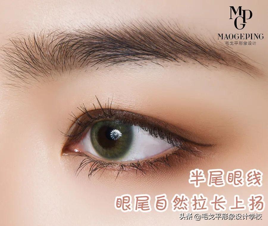 你可以尝试半尾眼线,在眼睛的后半部分压上深色的线条,眼尾自然拉长上扬即可,制造眼睛向外扩的视觉效果。