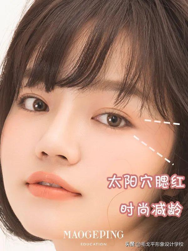 你也可以尝试太阳穴腮红画法,转移视觉注意力,氛围感超强。将腮红延伸到了太阳穴的位置,还可以从视觉上提升脸部线条。