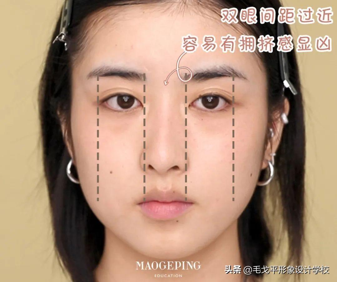 同时,双眼间距过窄还会导致面部其他部分留白过多,显得脸大。
