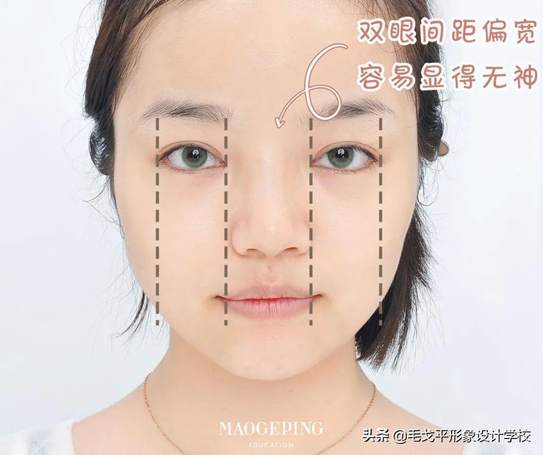 眼间距偏宽,缺乏聚拢感,会显得眼神涣散;眼间距过窄,五官会显得比较紧凑、不够舒展,化妆之后很容易显凶。所以化妆时要多注意细节、修饰调整。