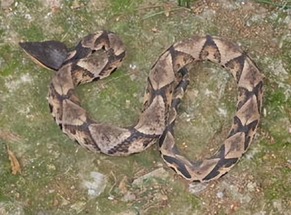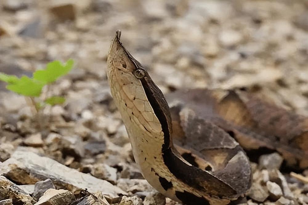 尖吻蝮蛇又被人们称为:“五步蛇”、“七步蛇”、“百步蛇”,它也是蝰蛇科的其中一员,从它的称号就可以猜想到它的毒素到底有多厉害了,它全身以灰褐色为主,头部呈现三角形状,脖子和头部有明显区分。