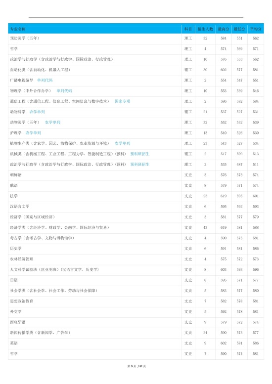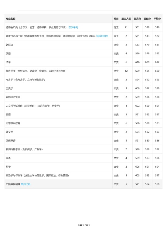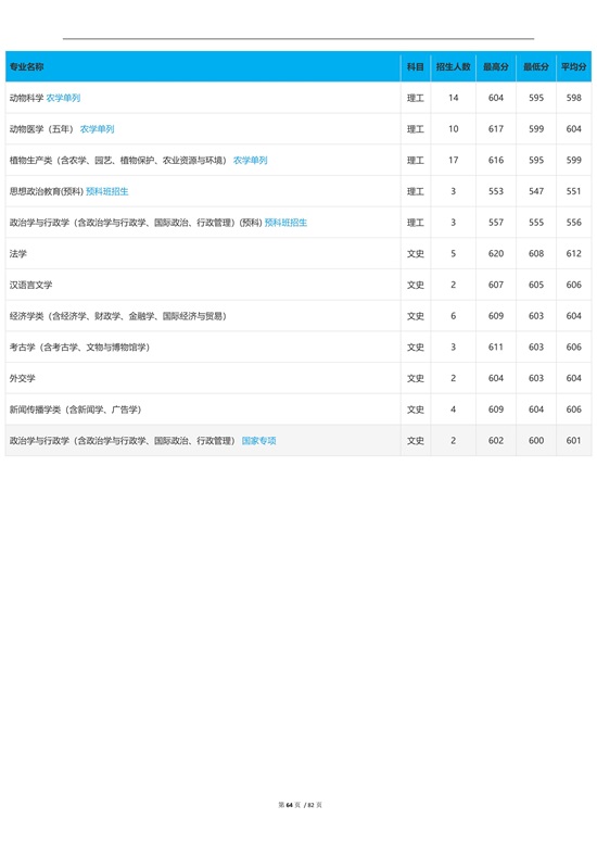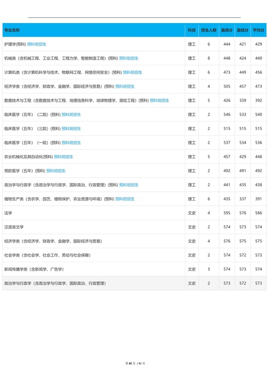 法学专业录取分数线最高,录取最低分为595分。广播电视编导 (单列代码)专业录取分数线最低,录取最低分为556分。