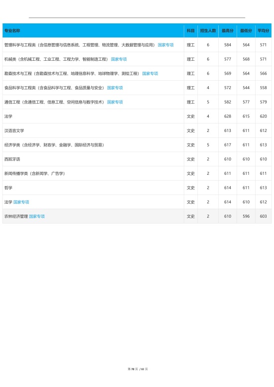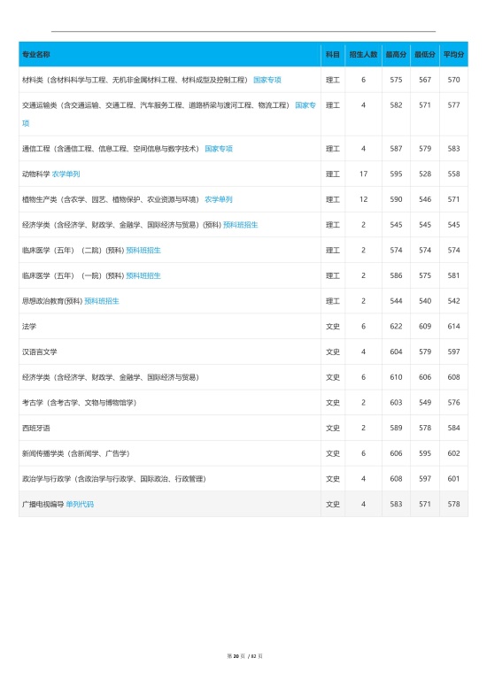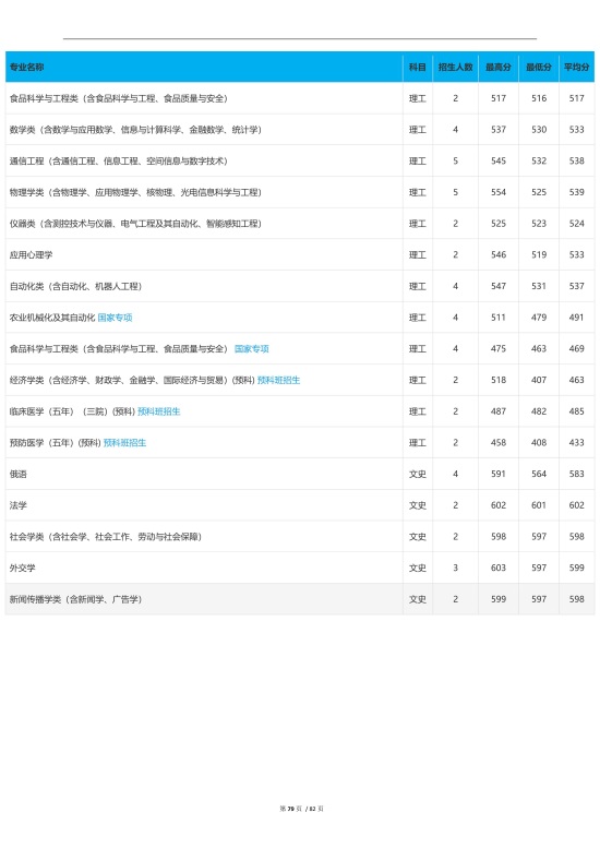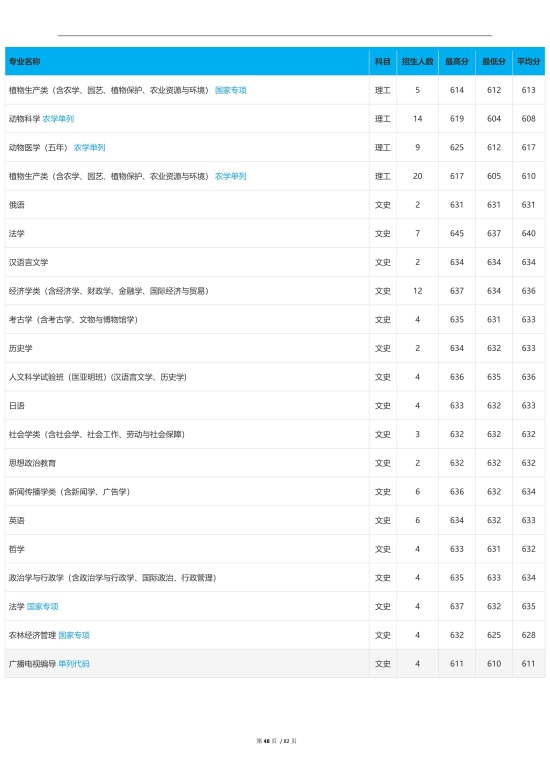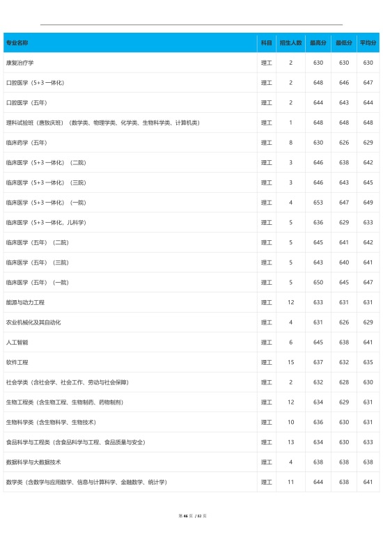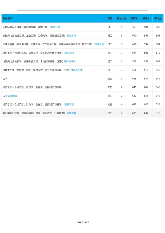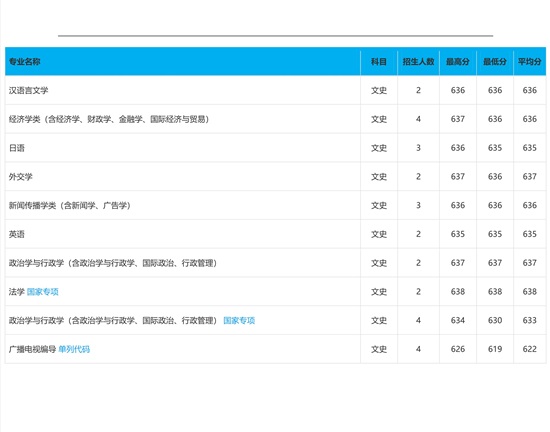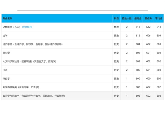 法学专业录取分数线最高,录取最低分为637分。广播电视编导( 单列代码)专业录取分数线最低,录取最低分为600分。