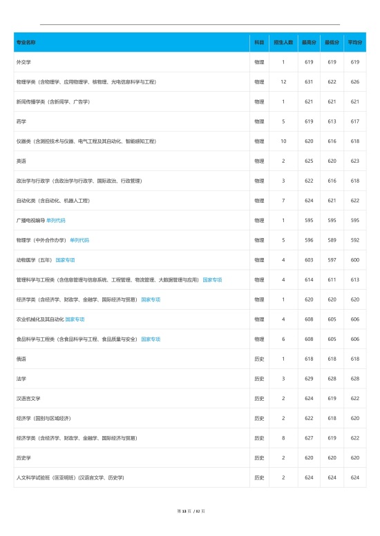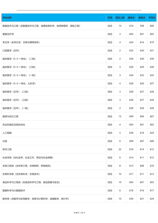 考古学(含考古学、文物与博物馆学)专业录取分数线最高,录取最低分为668分。物理学(中外合作办学)(单列代码) 录取分数线最低,录取最低分为637分。