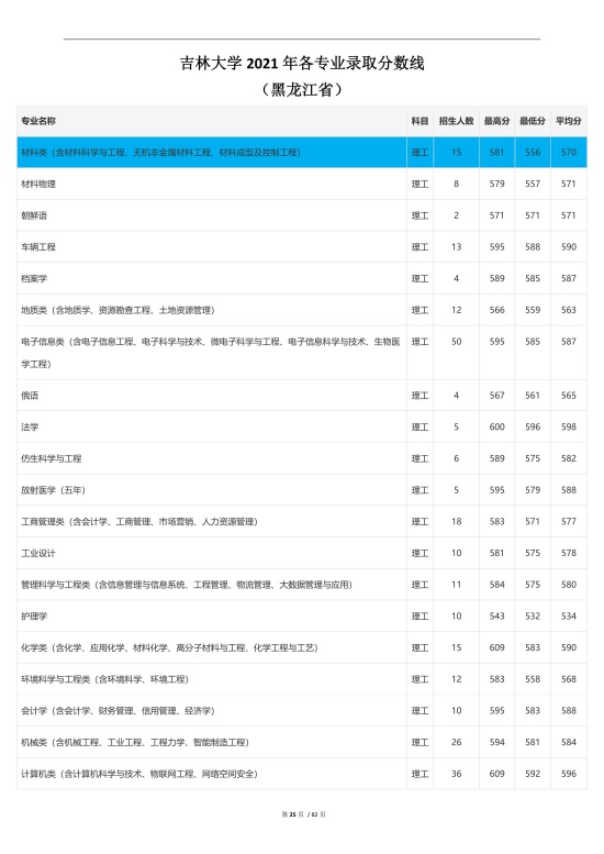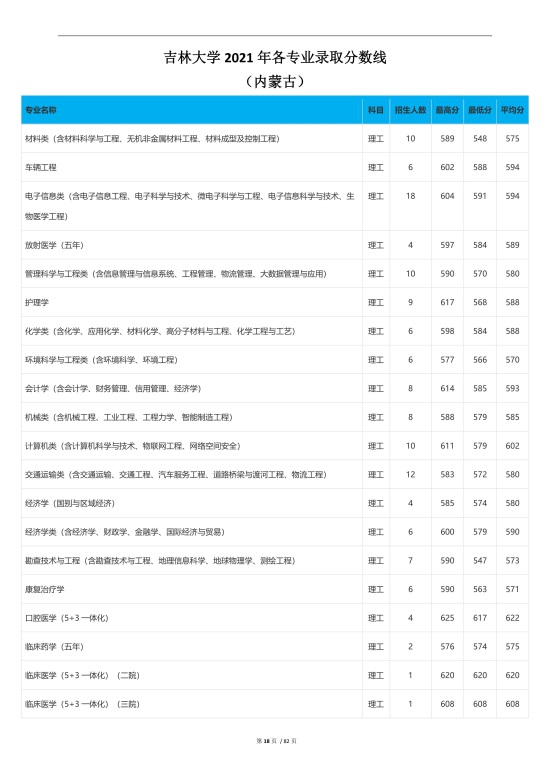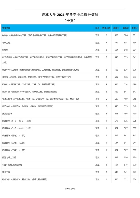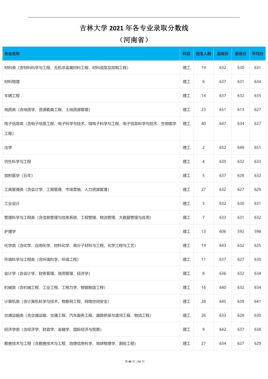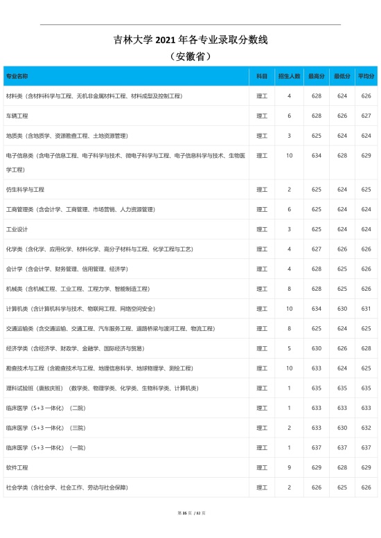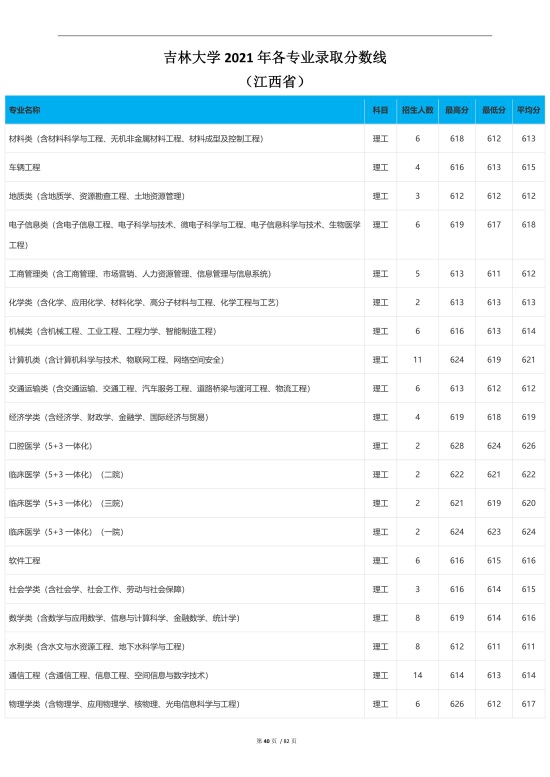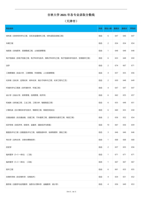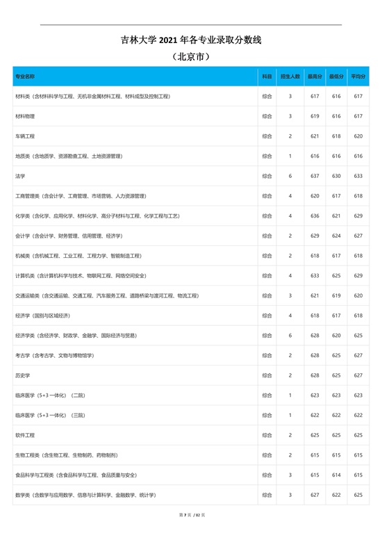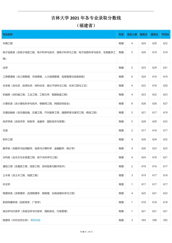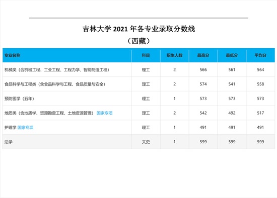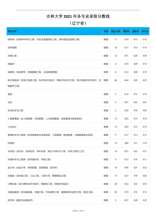 2022高考:吉林大学2021年在各省市本科招生的专业录取分数线