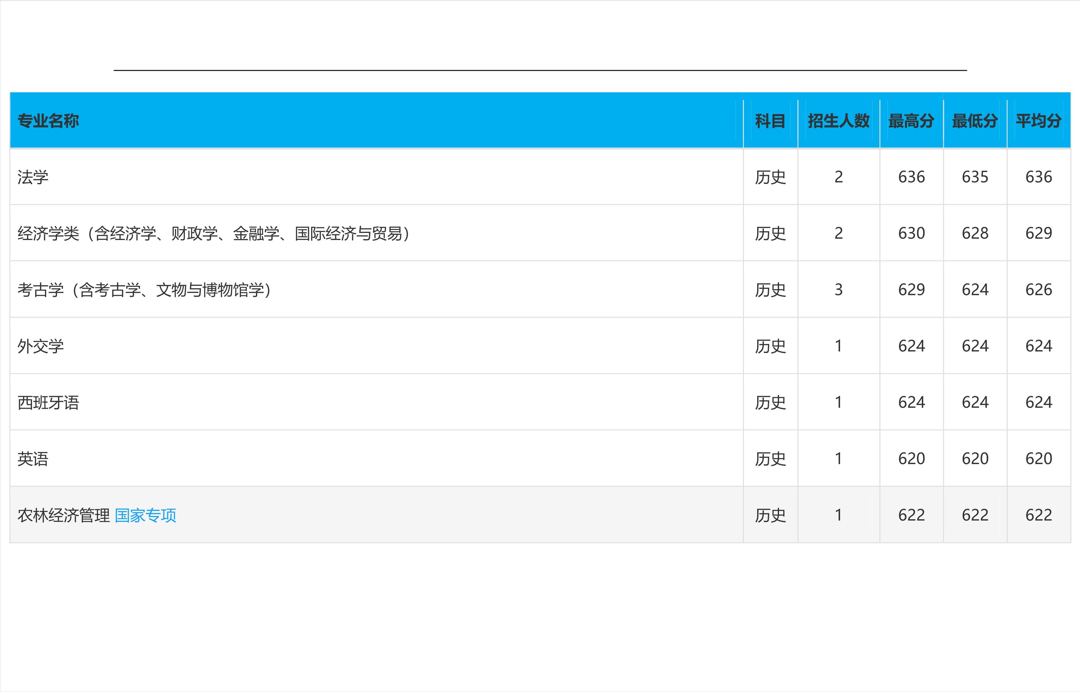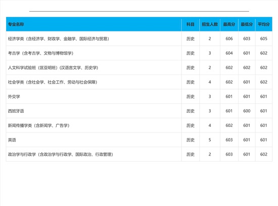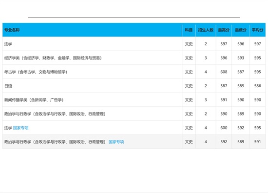 考古学(含考古学、文物与博物馆学)专业的录取分数线最高,录取最低分为615分。日语专业的录取分数线最低,录取最低分为605分。
