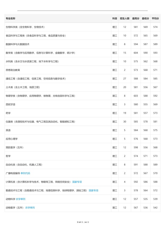 法学专业录取分数线最高,录取最低分为609分。广播电视编导 (单列代码)专业录取分数线最低,录取最低分为571分。