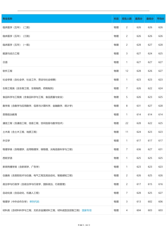 临床医学(5+3一体化)(二院)专业录取分数线最高,录取最低分为633分。物理学(中外合作办学)(单列代码)专业录取分数线最低,录取最低分589分。